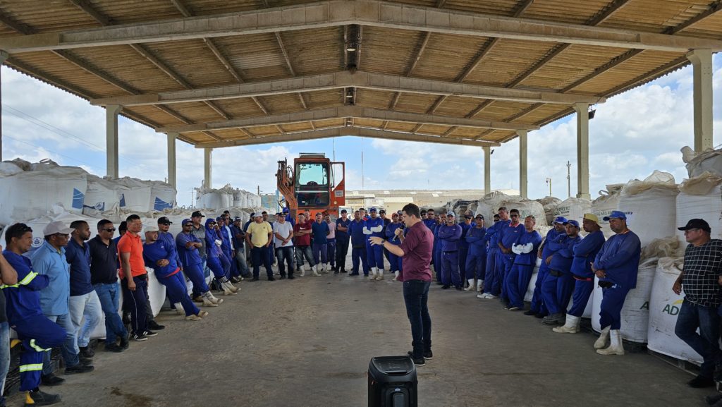 Em parceria com a Secretaria Municipal de Saúde, a Usina proporcionou aos colaboradores do campo e dos setores de Manutenção Mecânica, Elétrica e Empacotamento, um momento de aprendizado com os enfermeiros Miguel Ângelo Teles e Ana Lúcia Santos. Eles esclareceram dúvidas, reforçaram a relevância do diagnóstico precoce e alertaram sobre os riscos e possíveis sequelas do câncer de próstata.